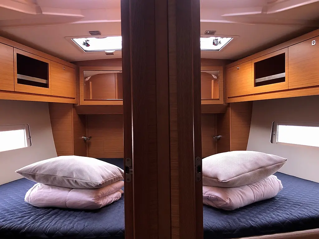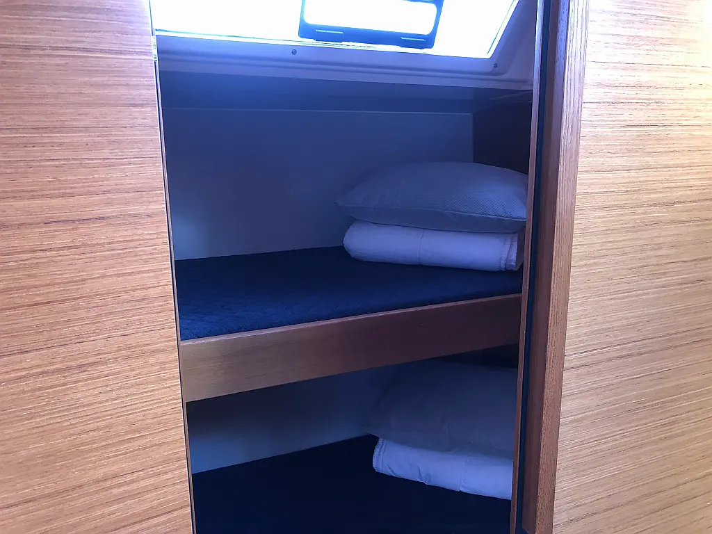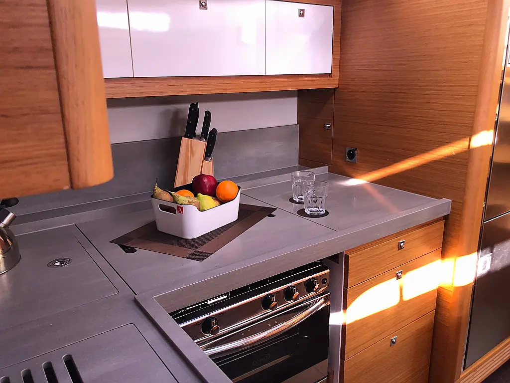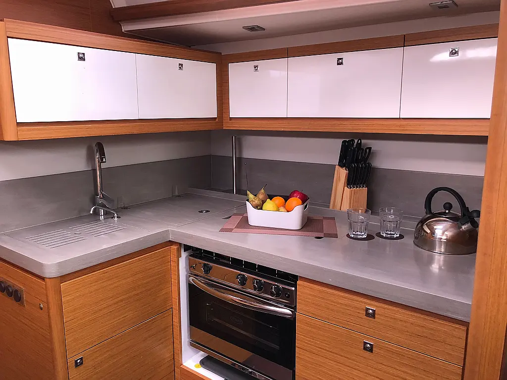 Jastuci u kokpitu , Roštilj u kokpitu , Paluba od tikovine , Električni WC , Hladnjak , Platforma za plivanje , Električna vitla , Hidraulučna pasarela , Inverter , Solarni paneli