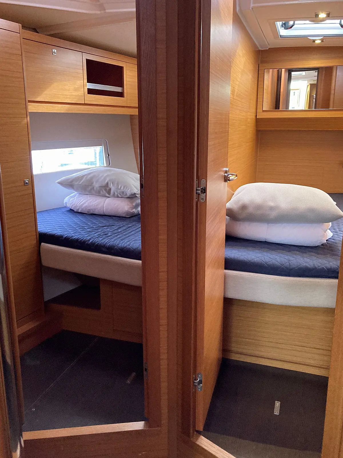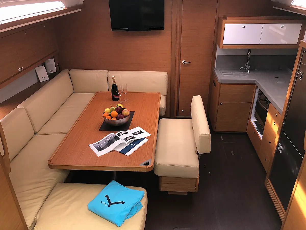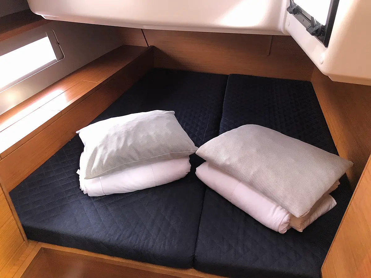 Jastuci u kokpitu , Roštilj u kokpitu , Paluba od tikovine , Električni WC , Hladnjak , Platforma za plivanje , Električna vitla , Hidraulučna pasarela , Inverter , Solarni paneli