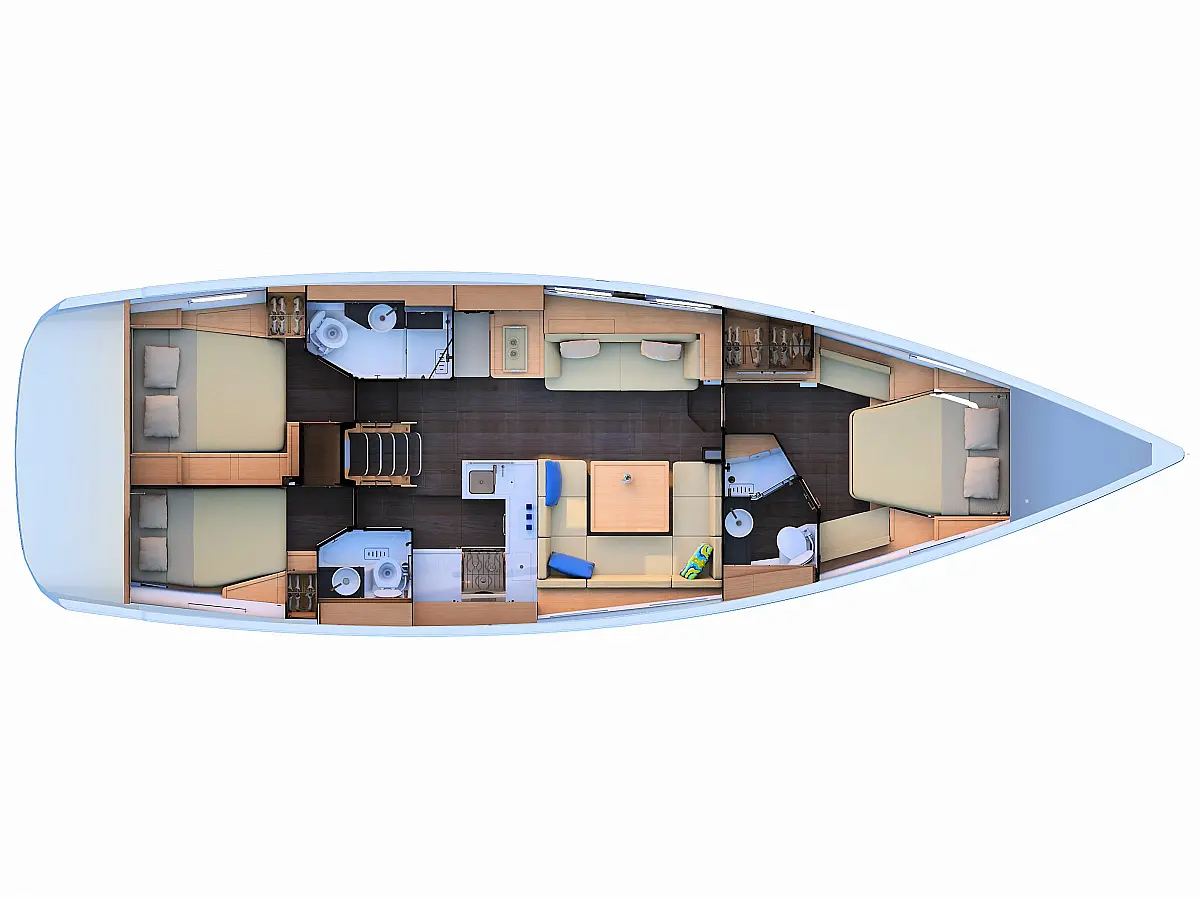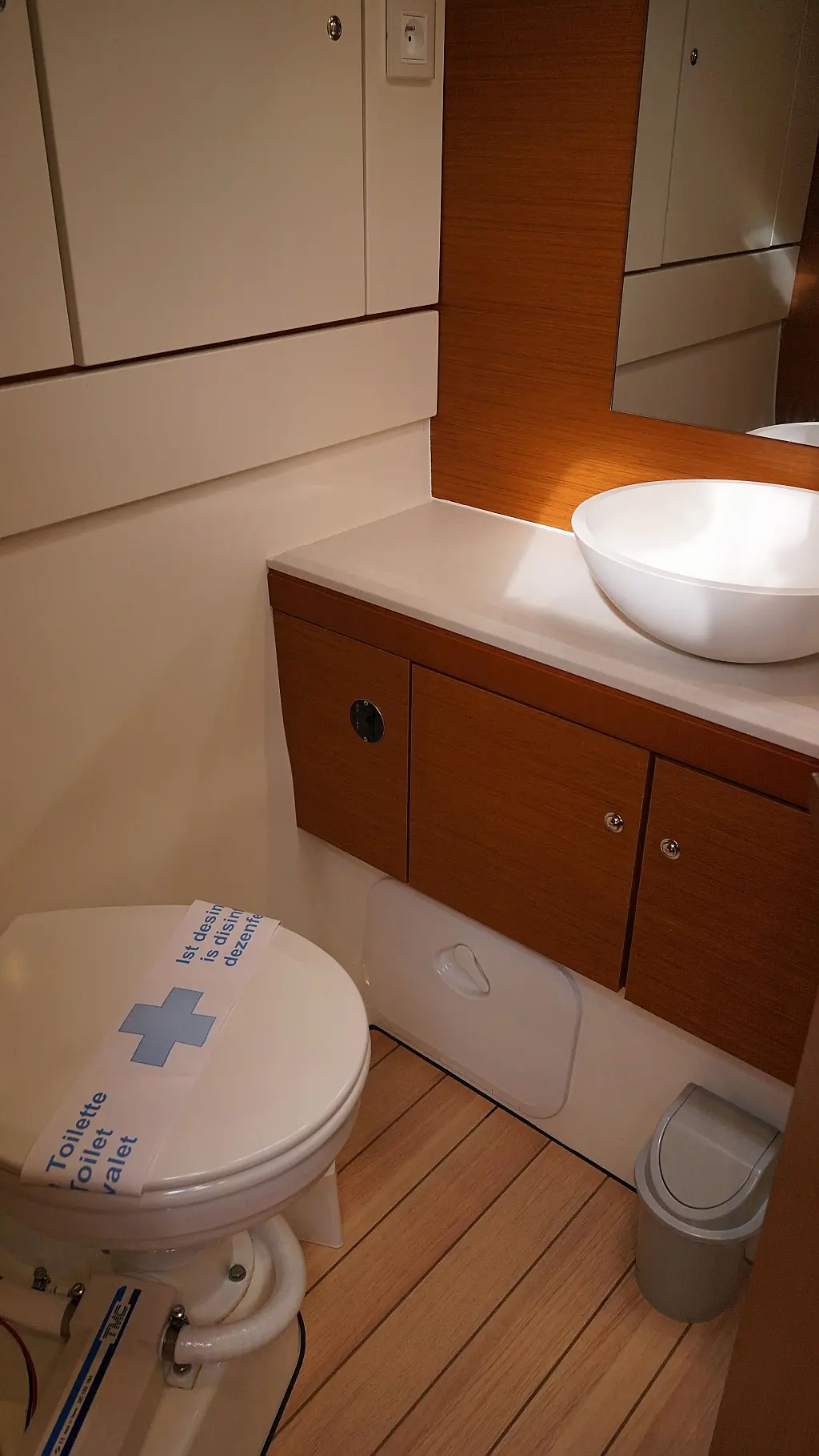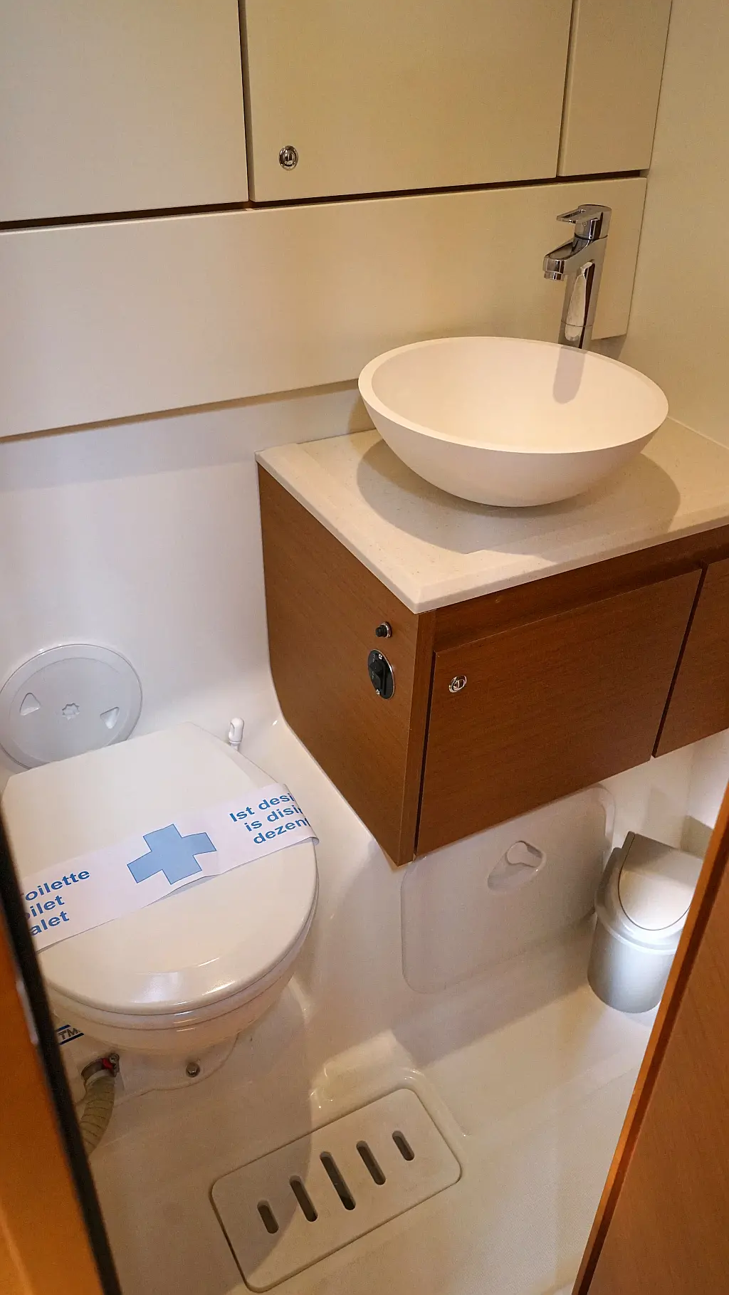Pomoćni čamac , Električna vitla , Hladnjak , Inverter , Generator , Grijanje , Aparat za kavu , Klima , Električni WC , Sprayhood , Bimini , Solarni paneli