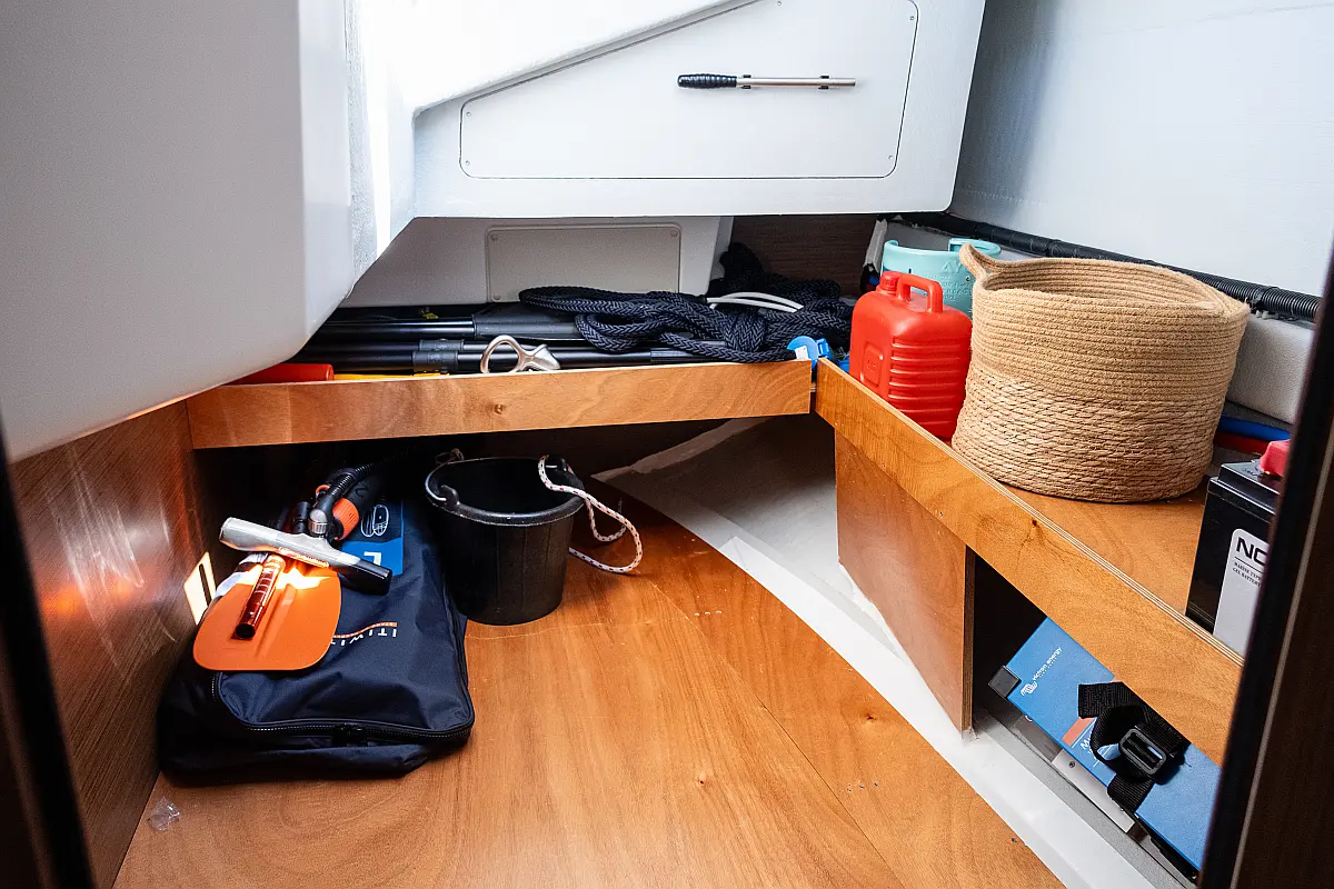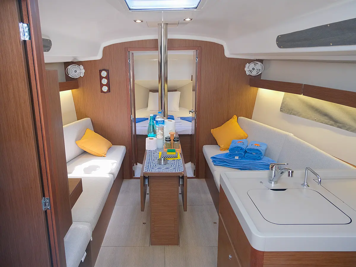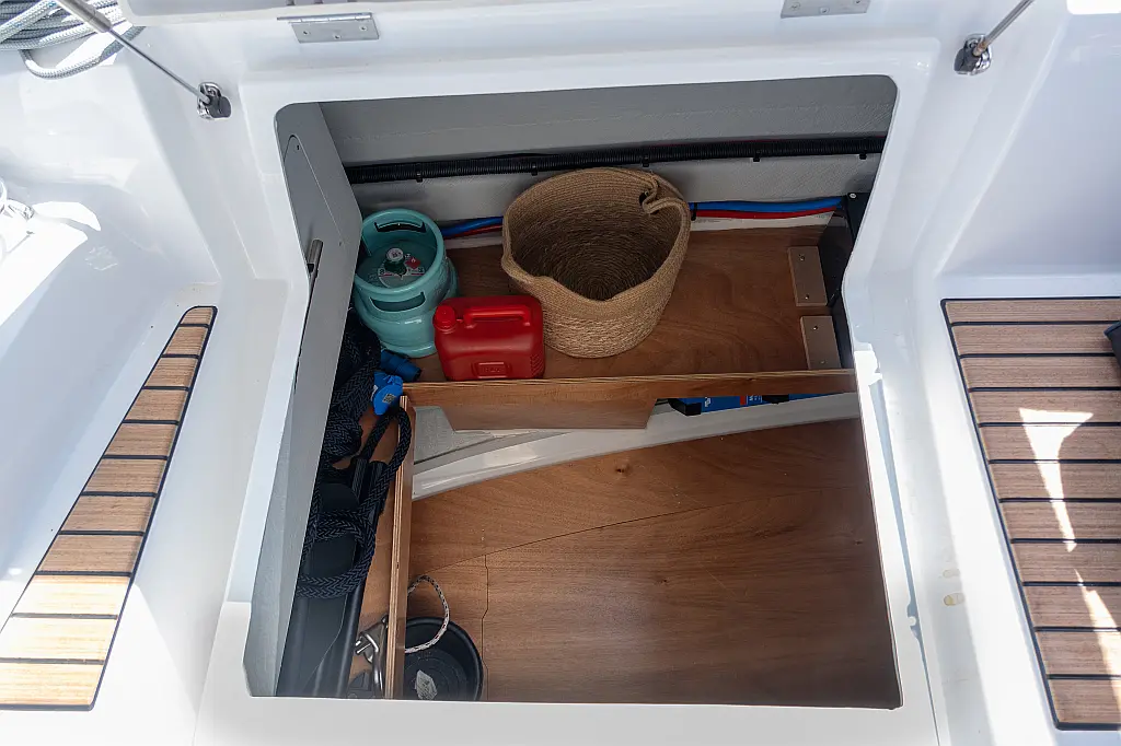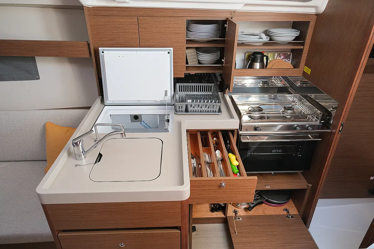 Grijanje , Električni WC , Solarni paneli , Inverter , Hladnjak , Vanbrodski motor , Pomoćni čamac , Bimini , Jastuci u kokpitu