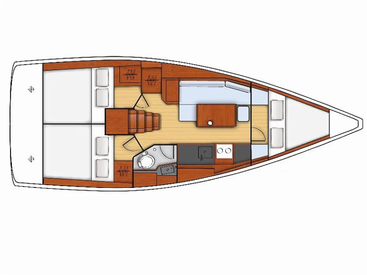 Hladnjak , Pomoćni čamac , Solarni paneli , Bimini , Platforma za plivanje , Tikovina u kokpitu , Sprayhood