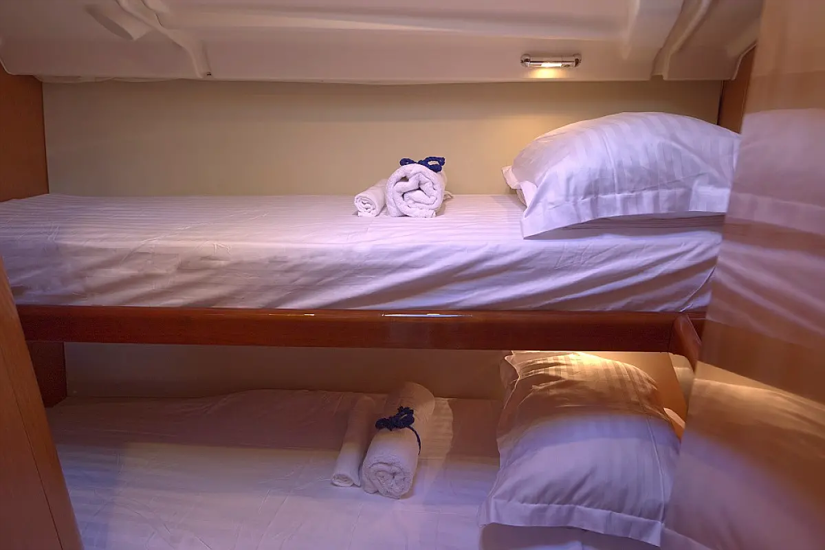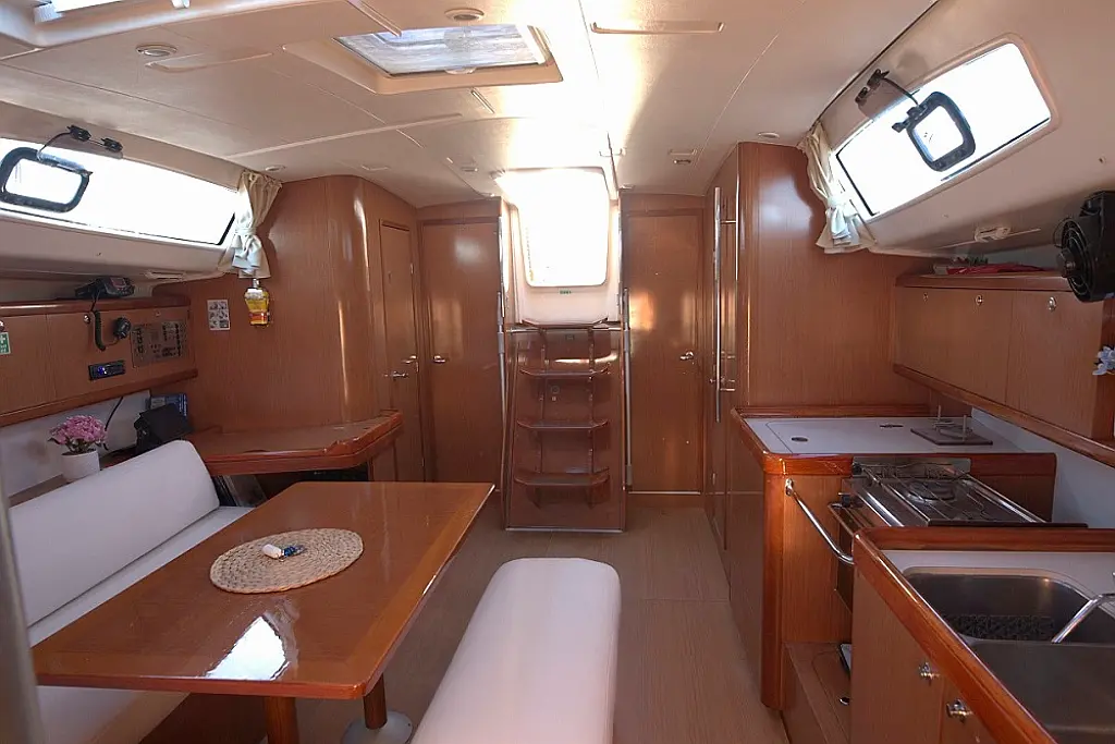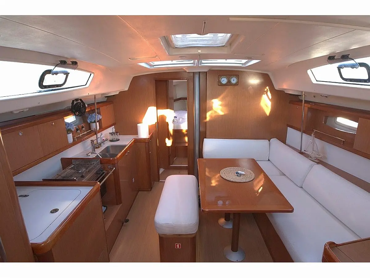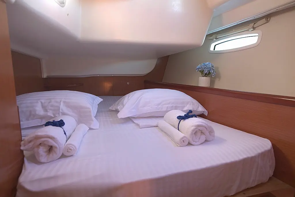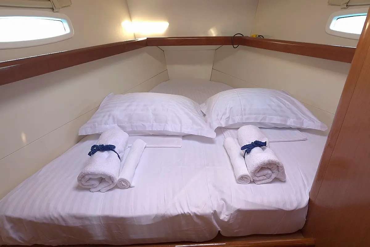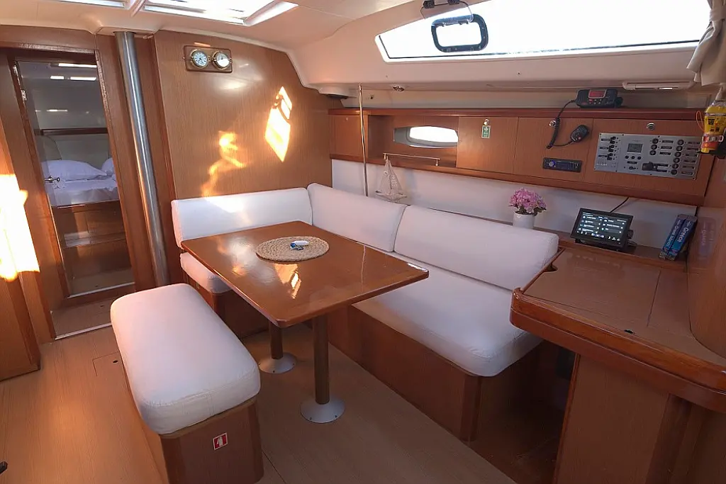 Zvučnici u kokpitu , Hladnjak , Vanbrodski motor , Solarni paneli , Sprayhood , Paluba od tikovine