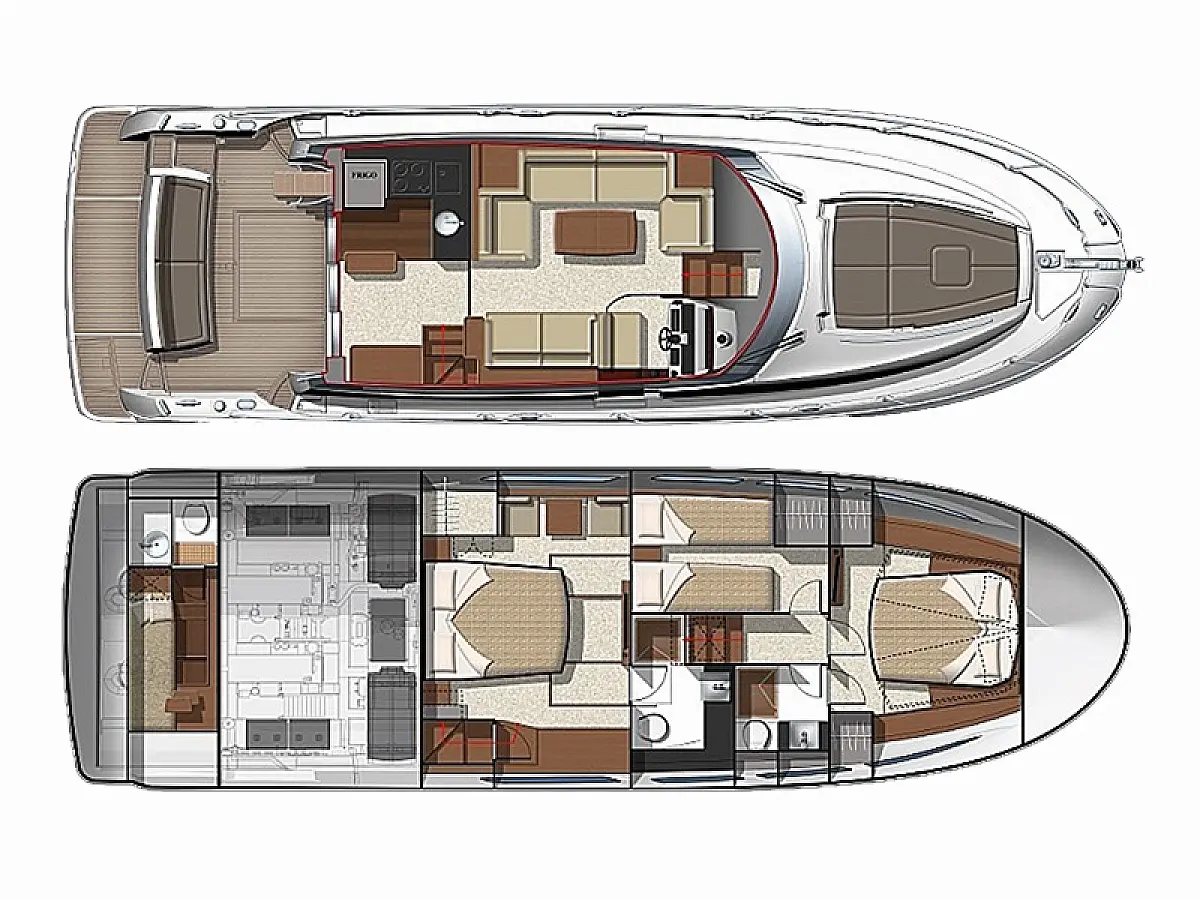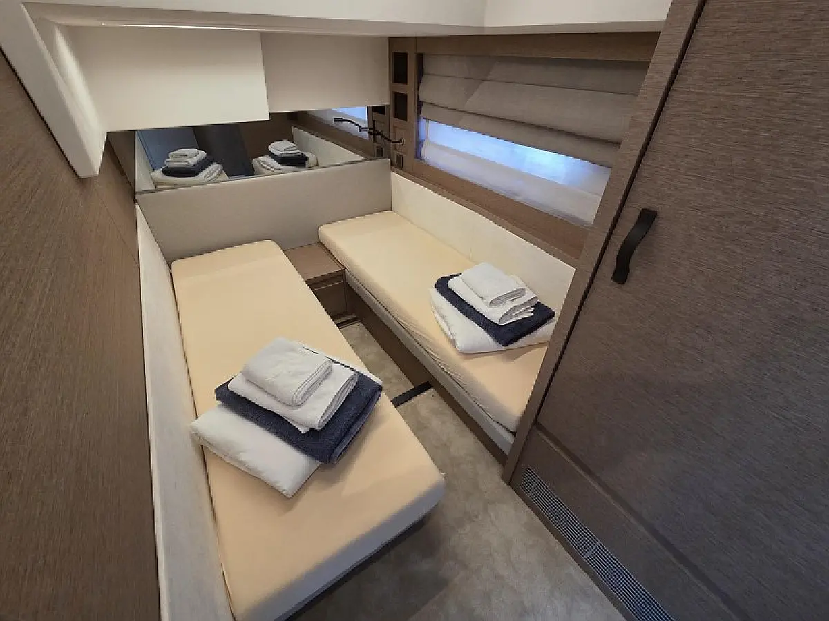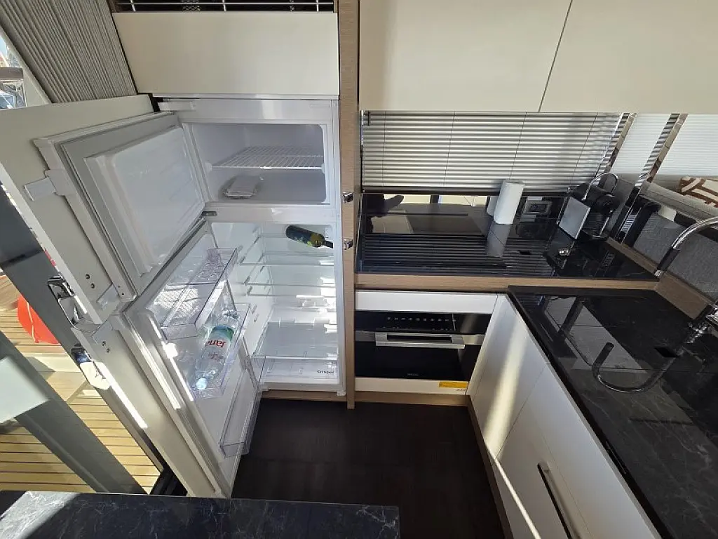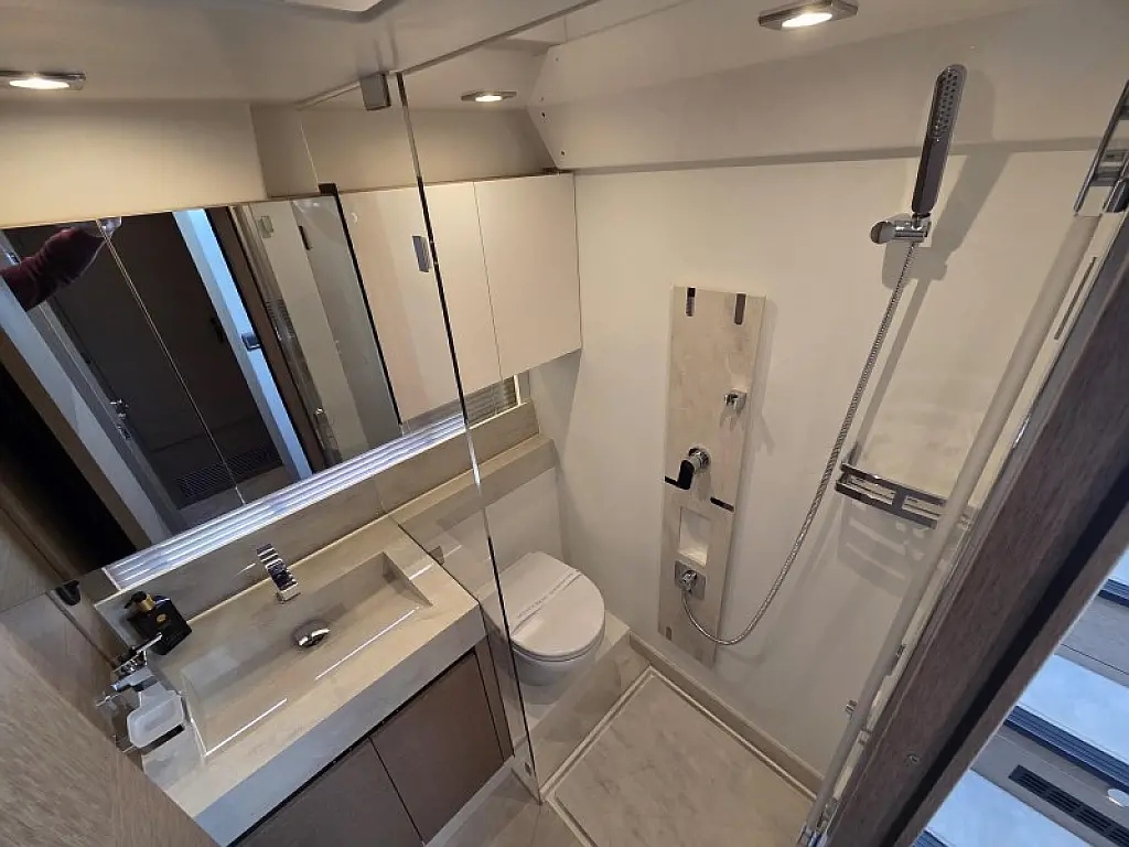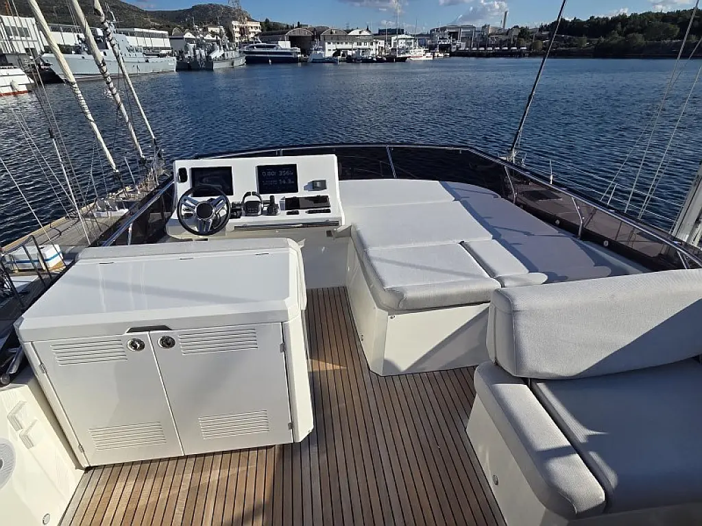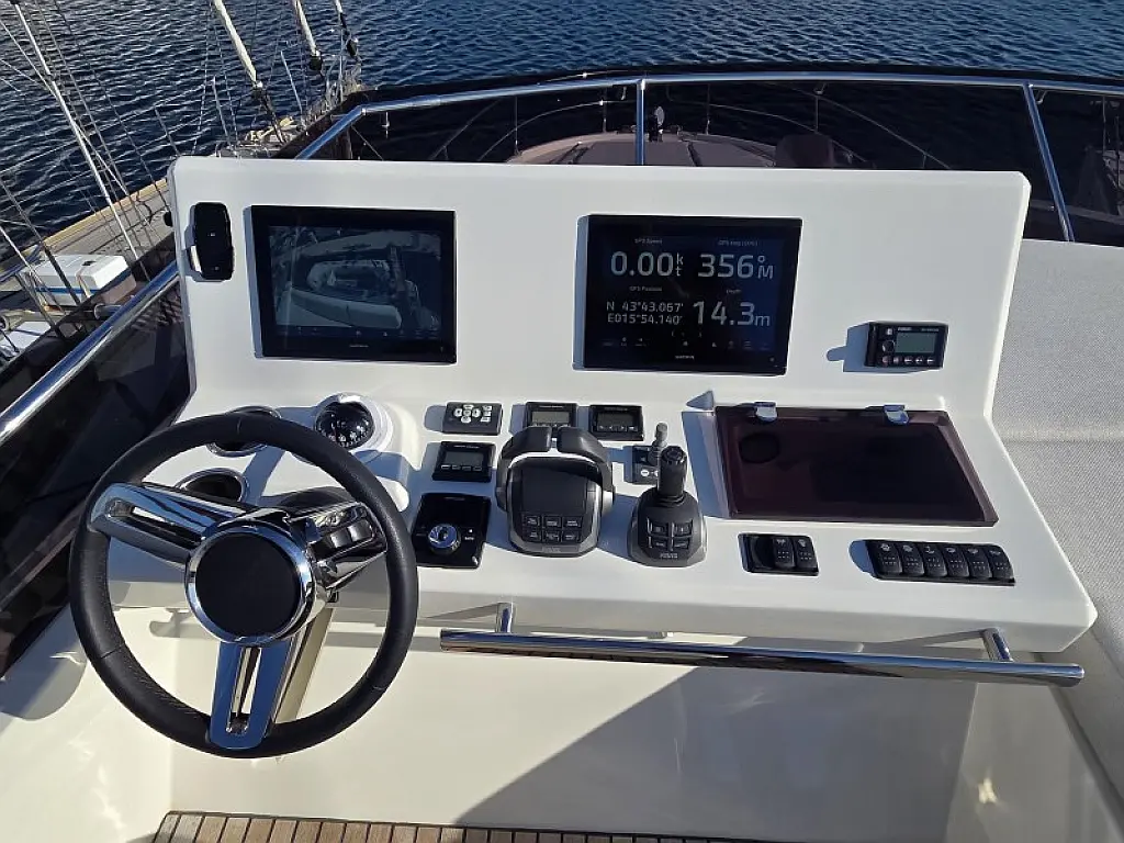 Generator , Grijanje , Klima , Hladnjak , Bimini , Jastuci u kokpitu , Vanbrodski motor , Hidraulučna pasarela , Flybridge , Wi-Fi i internet