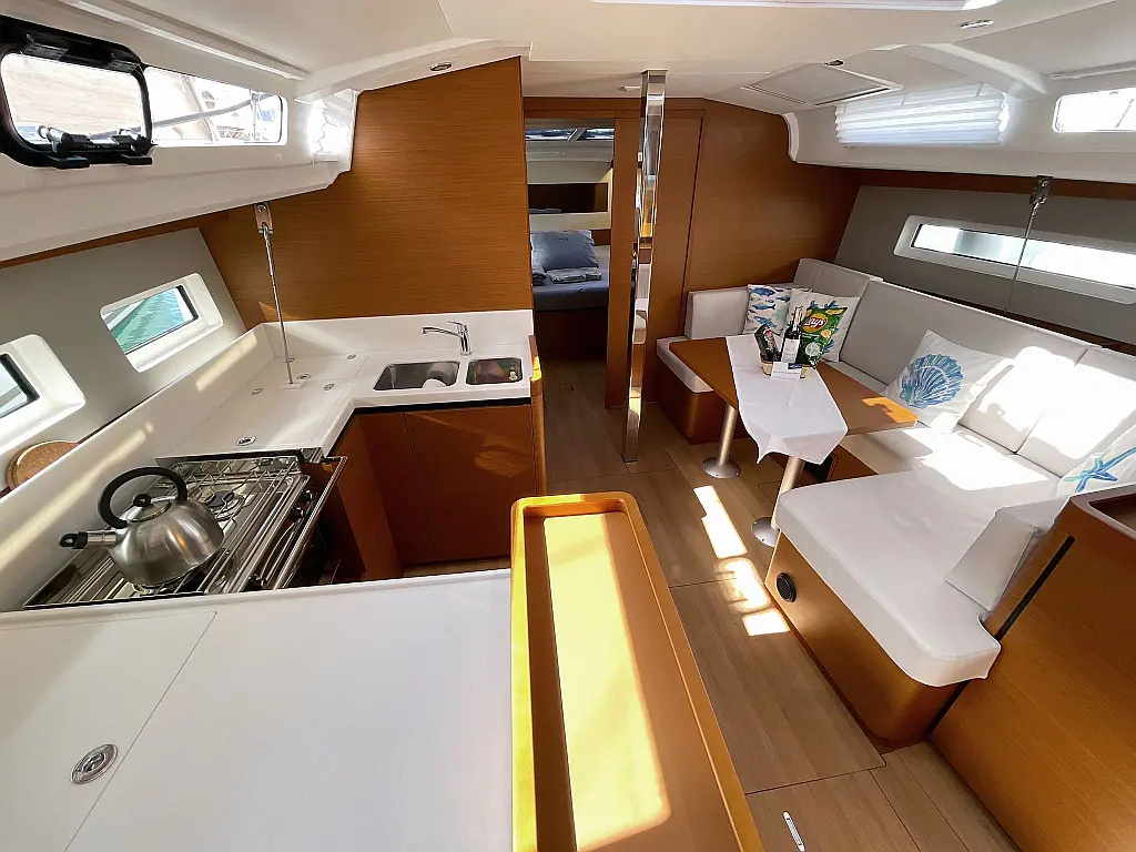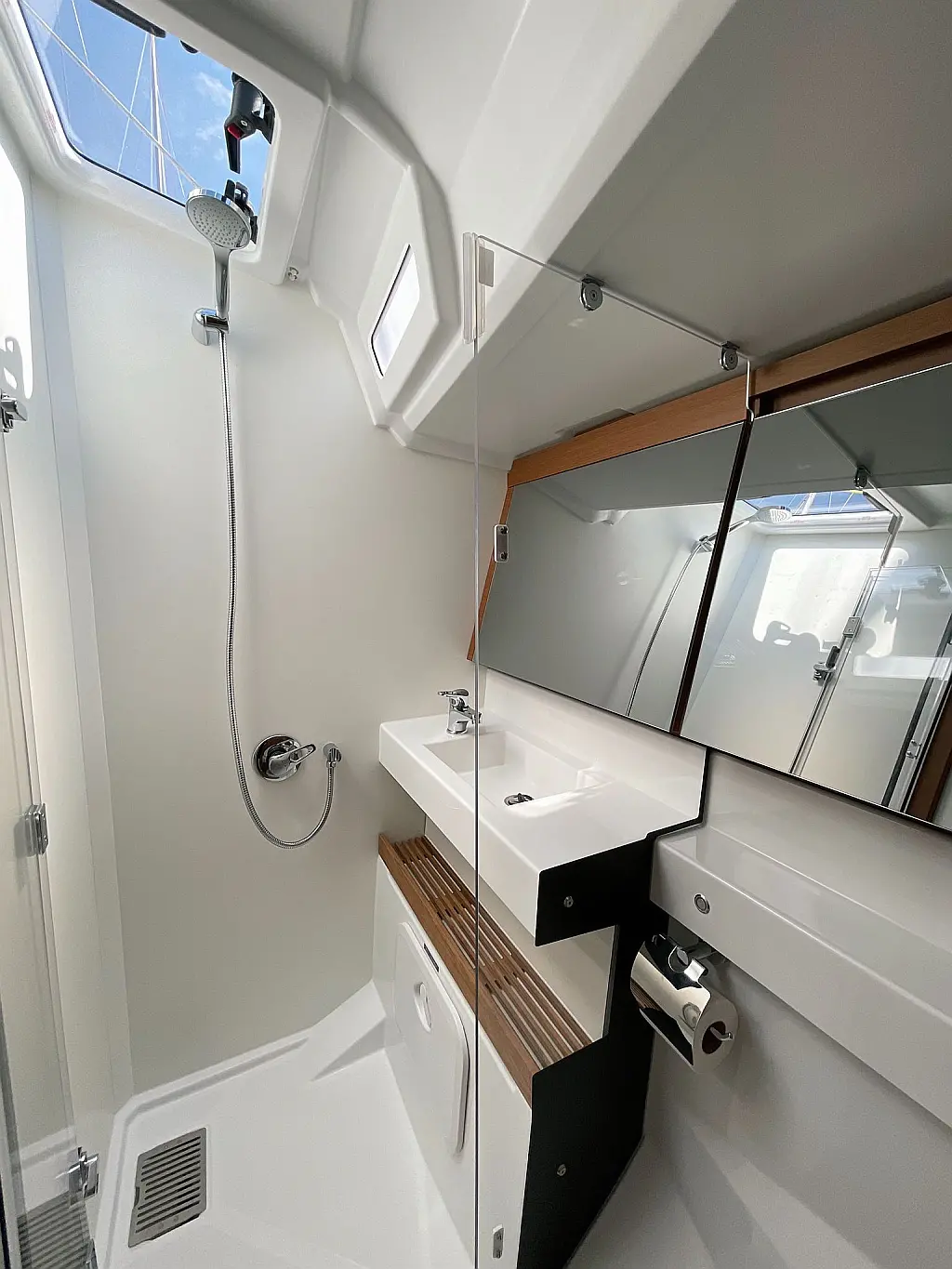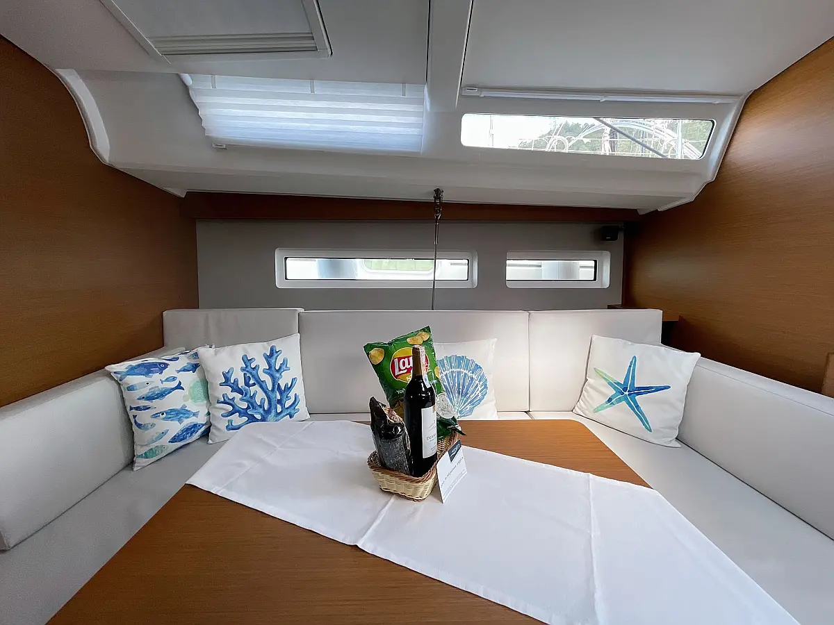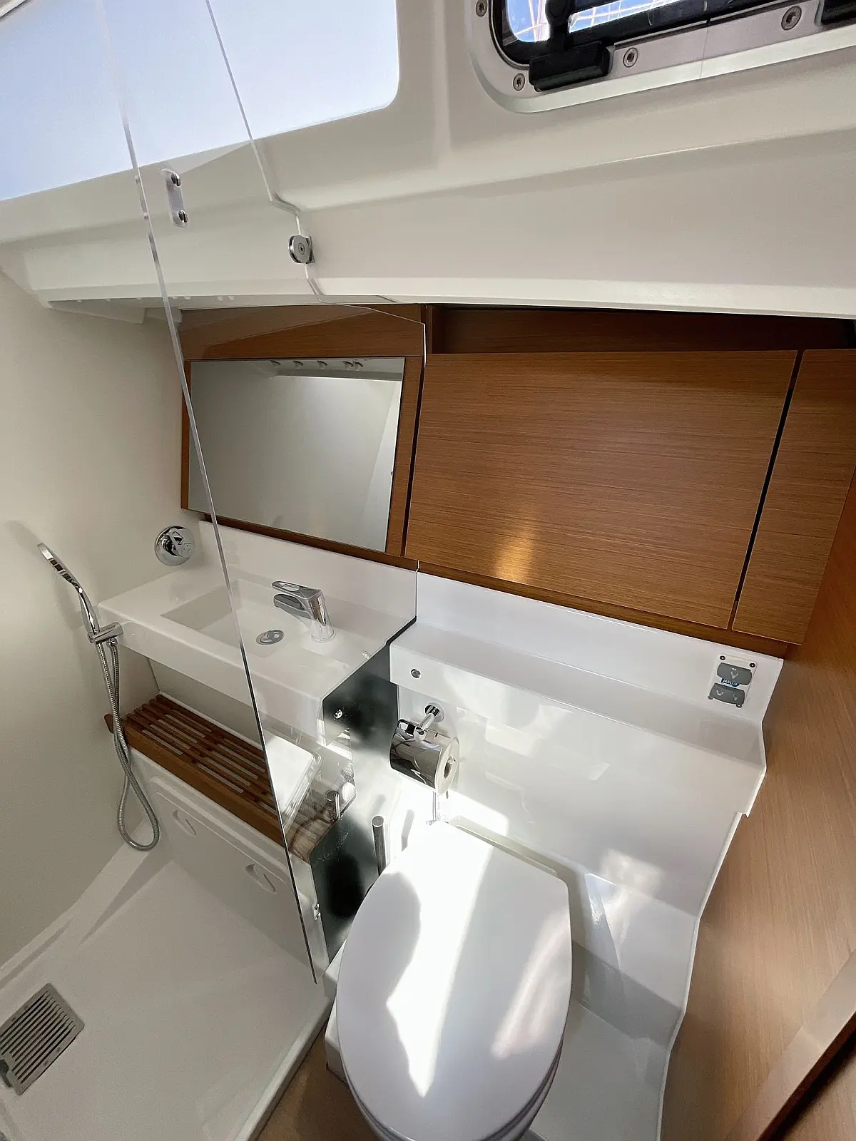 Inverter , Klima , Solarni paneli , Grijanje , Hladnjak , Električni WC , Pomoćni čamac , Sprayhood , Tikovina u kokpitu , Jastuci u kokpitu , Bimini