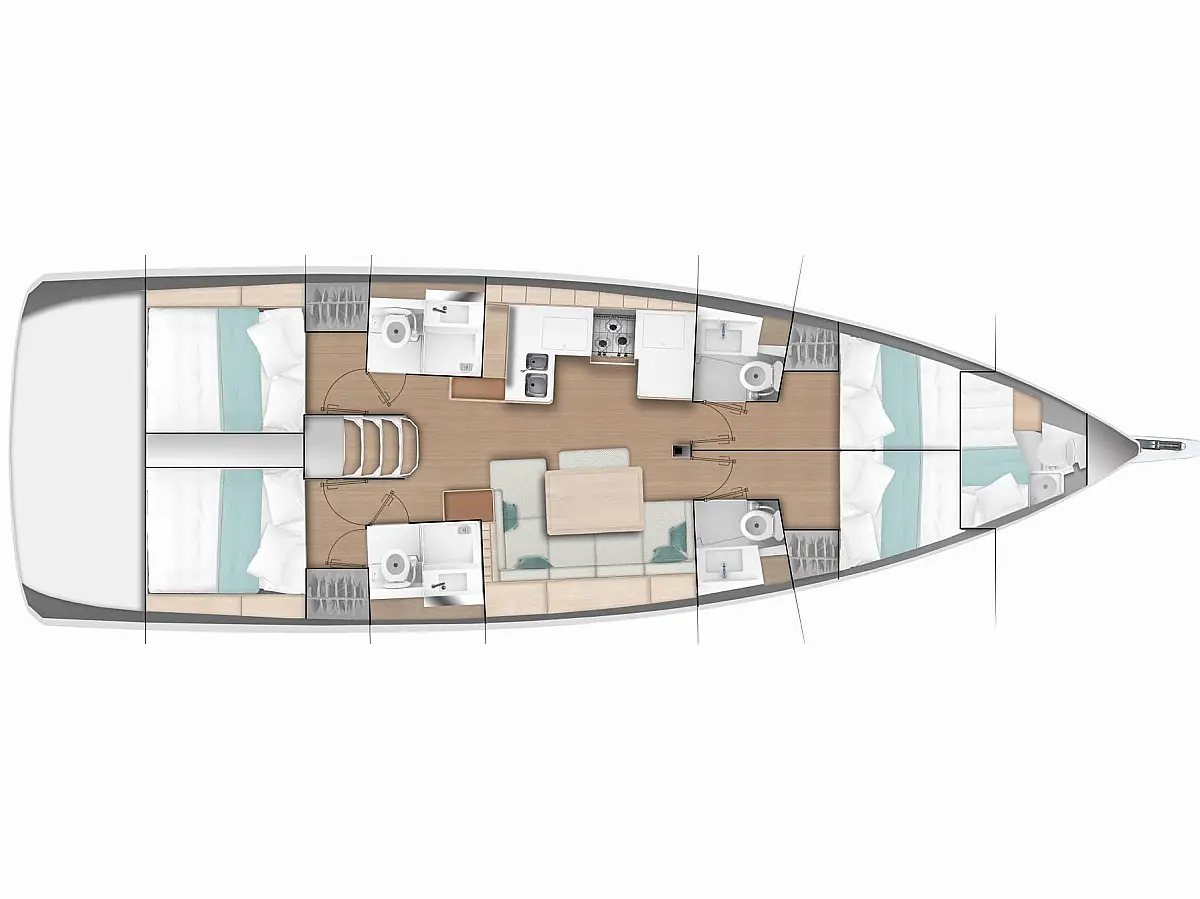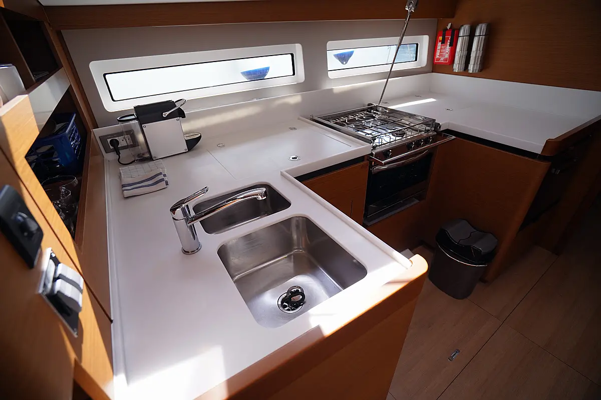 Pomoćni čamac , Električna vitla , Hladnjak , Inverter , Generator , Grijanje , Aparat za kavu , Klima , Električni WC , Sprayhood , Bimini , Solarni paneli
