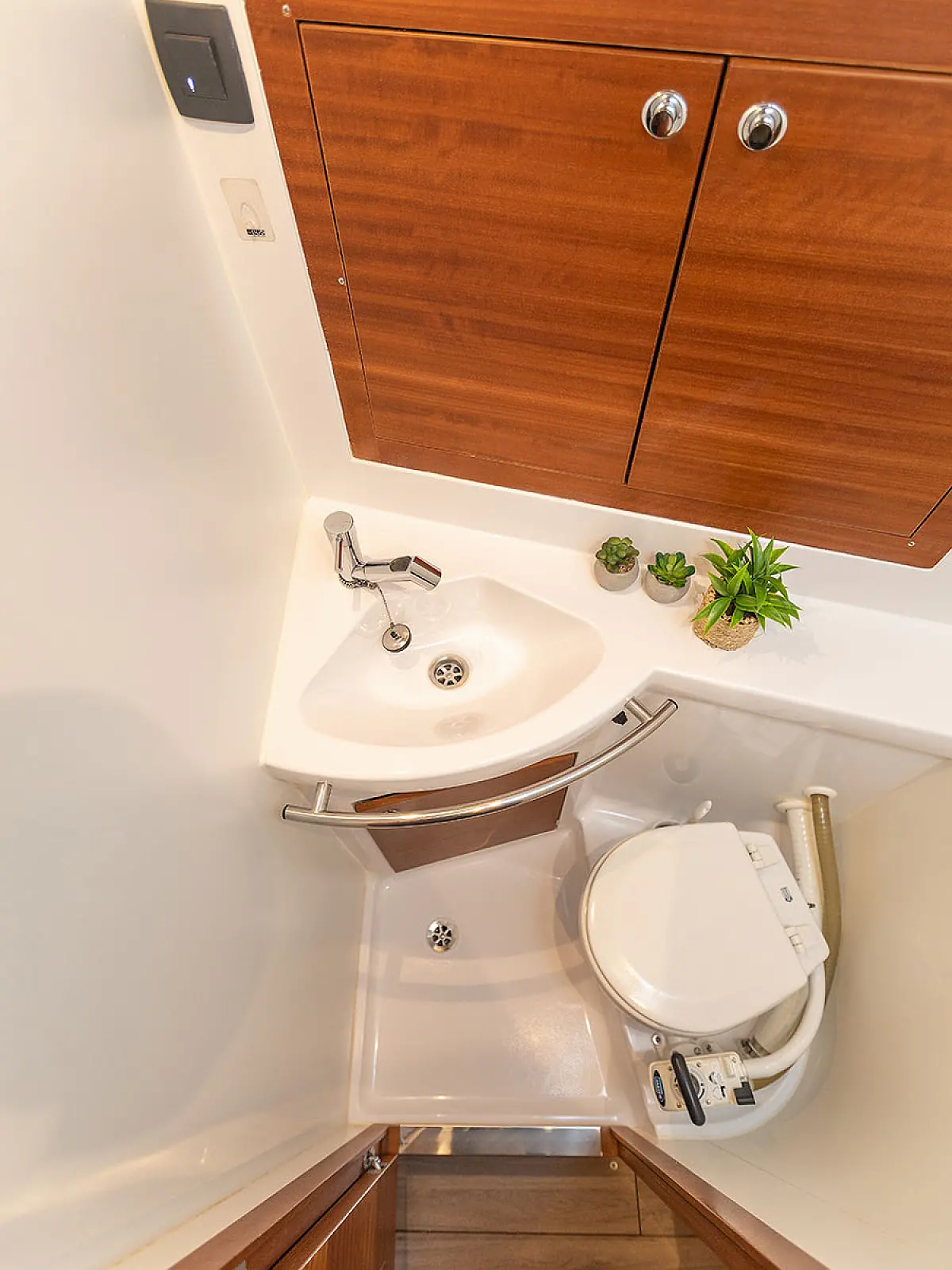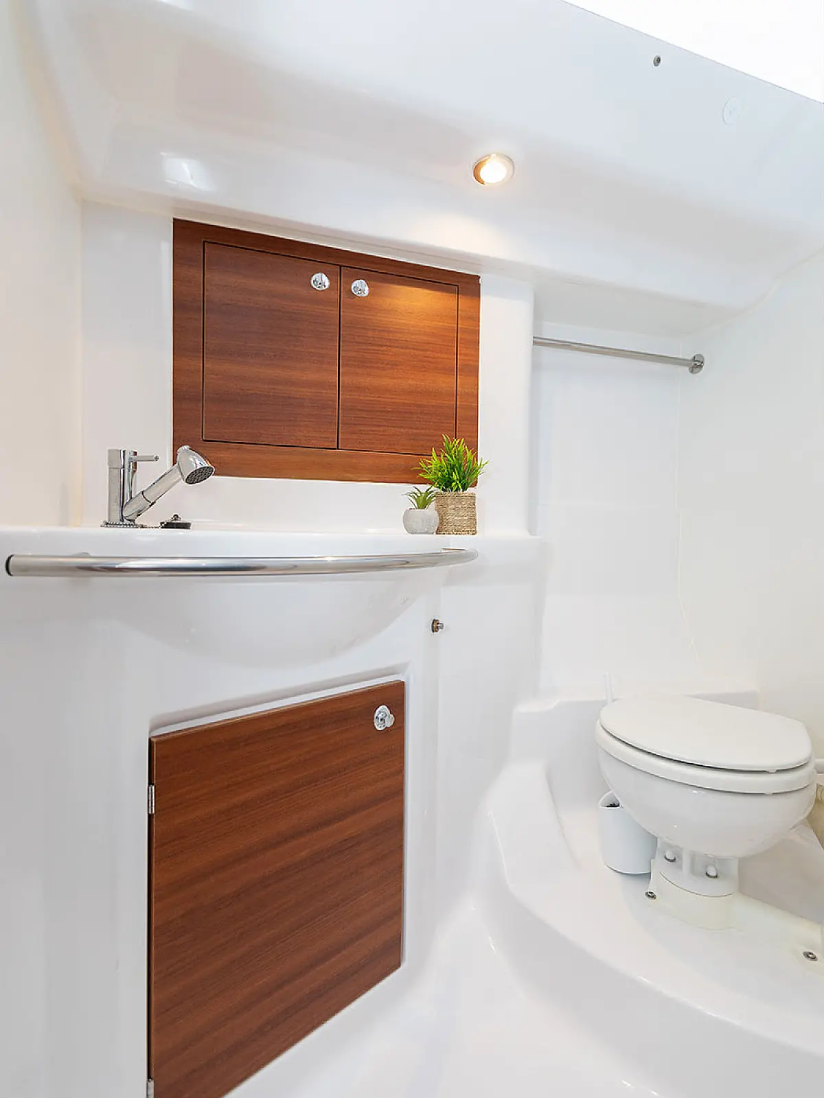 Teak in pozzetto , Sprayhood , Bimini , Cuscini in pozzetto , Motore fuoribordo , Frigorifero , Altoparlanti in pozzetto , Riscaldamento , Inverter