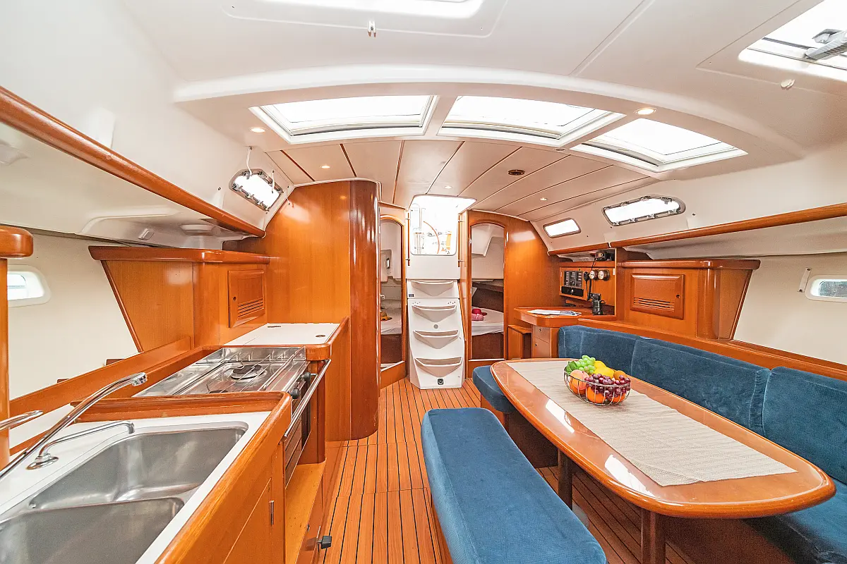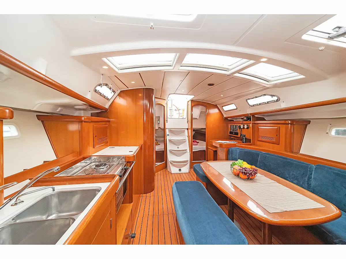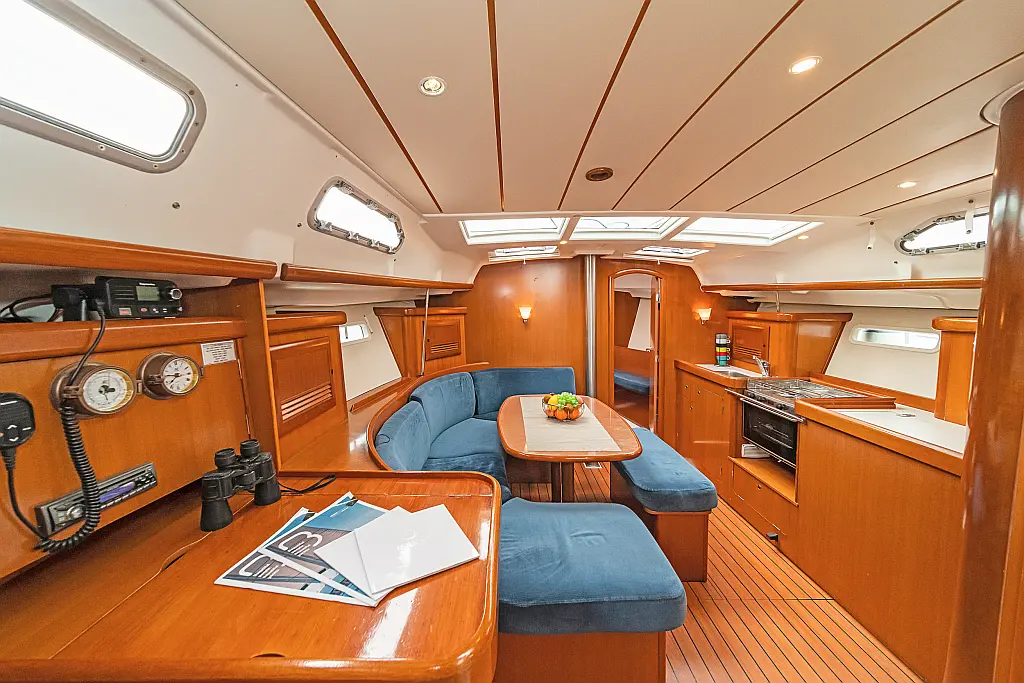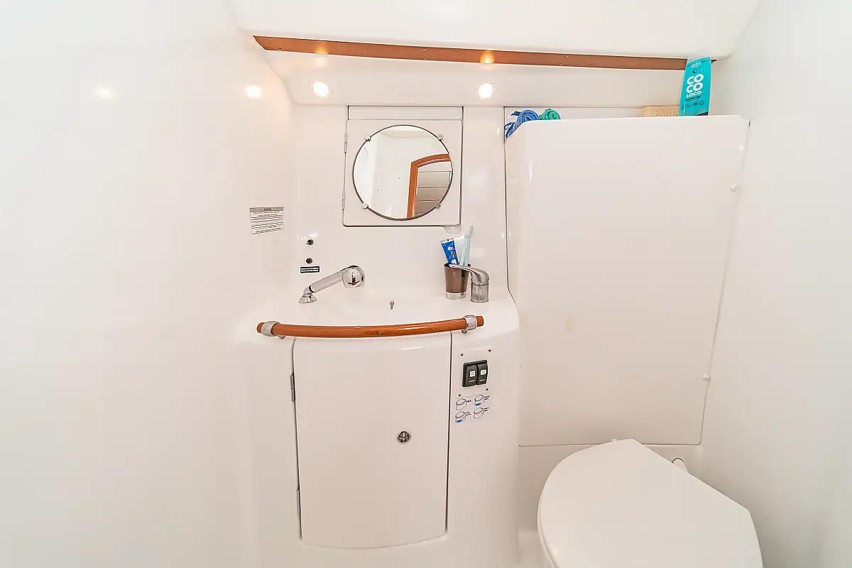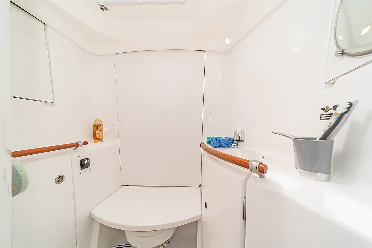 Cuscini in pozzetto , Sprayhood , Bimini , WC elettrico , Frigorifero , Altoparlanti in pozzetto , Pannelli solari